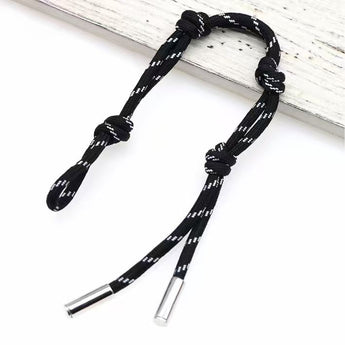 Bold, modern and a little bit edgy - this black-and-white striped lace charm means business - of the fun kind! With chunky knots and sleek silver end accents, it is the perfect mix of sporty chic and street-style cool. A statement piece that instantly upgrades any bag with attitude and flair.