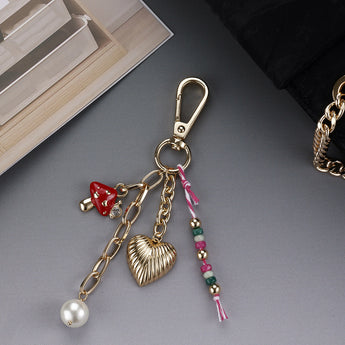 Textured Heart, Mushroom and Pearl Bag Charm