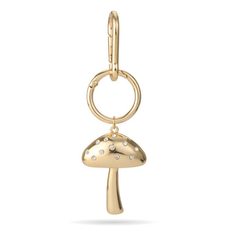 Sprinkle a little magic into your everyday carry with this whimsical golden mushroom charm. Crafted with gleaming gold-tone detailing and adorned with sparkling embedded gems, it's the perfect pint-sized companion for your bag, keys, or backpack. Whether you're a nature lover, gem enthusiast, or just someone who believes in adding joy to the mundane, this enchanting accessory brings a touch of woodland wonder wherever you go. Dainty yet eye-catching, it's sure to spark smiles and conversations.