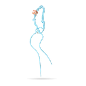 Add a splash of cool calm to your bag with this sky-blue thick lace charm. Soft, knotted and finished with a cute checkered dice bead, it is giving playful, laid-back energy - like a little twist of weekend sunshine. Easygoing, fun and effortlessly stylish - the perfect chill accent for your favourite bag.