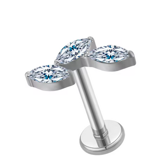 Delicate marquise gems nestled in an enchanting leaf design—this stud brings a touch of botanical elegance to your ear. Three sparkling stones catch the light with every turn of your head, creating a subtle shimmer that whispers rather than shouts. Perfect for those who love nature-inspired jewellery with a refined, understated charm. A playful nod to the garden, right where it belongs.