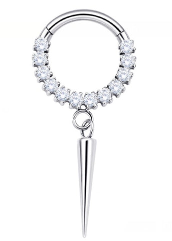 Meet the Front Facing Prong and Spike Clicker Hoop - slick, bold and just the right amount of edge. The front-facing gems bring the sparkle, while the tiny spike adds a touch of rebellion.  It is the perfect mix of glam and grit - made for the ones who shine and slay!