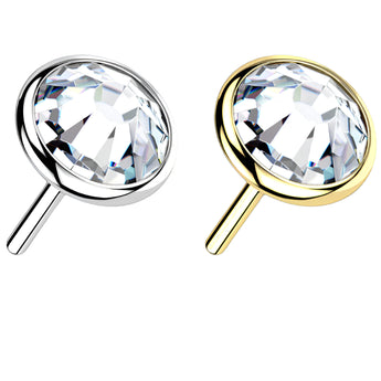 14ct Solid Gold top with steel pin and a single bevel gemstone.  Sold with titanium post.