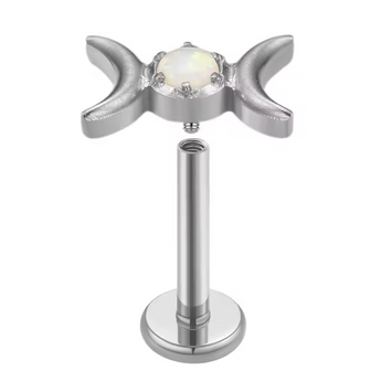 Double the moon, double the magic! This double crescent moon opal prong gem stud shimmers with dreamy iridescence, like moonlight captured in jewellery form. Two graceful crescent moons surround surround a celestial opal. Elegance with a mystical twist. Perfect for star gazers, night owls and anyone who believes in a little lunar magic!