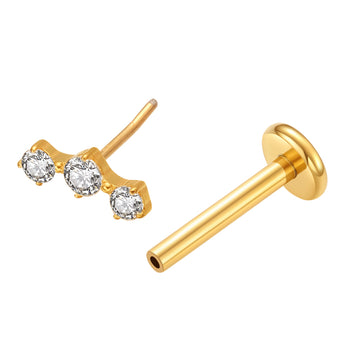 Delicate, dazzling and written in the stars! This chic little stud features a trio of sparkling prong gems that twinkle like your own mini constellation. Perfect for everyday shine or stacking with your galaxy of piercings.