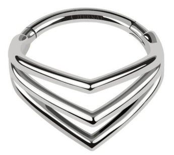Elevate your style with this Tripled Segmented Chevron Hoop—three sleek, chevron-shaped segments come together to create a fun and dynamic look. Perfect for adding a playful twist to any outfit. Lightweight and comfortable, they make wearing bold charm effortless.