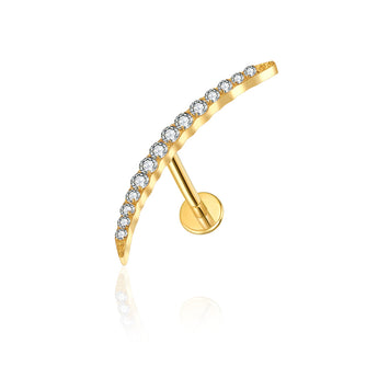 Embrace your celestial side with this enchanting gemmed crescent moon crawler. This whimsical ear cuff features a delicate crescent silhouette adorned with sparkling gemstones that catch the light beautifully. Perfect for adding a touch of cosmic magic to your everyday look or special occasions. The crawler design hugs your ear comfortably, making it an eye-catching statement piece that celebrates your love of all things mystical and moonlit.