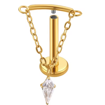 Elevate your ear game with this whimsical hidden helix stud featuring a stunning kite-shaped gem that catches the light beautifully. The delicate chain adds an unexpected touch of movement and elegance, creating an enchanting sparkle with every turn of your head. Perfect for those who love a bit of hidden glamour tucked away in their piercing collection.