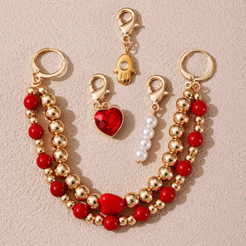 Turn your laces into little love charms with this stunning red-and-gold- duo chain, sprinkled with glossy beads and a tiny heart centrepiece. Paired with three mix-and-match charms - a pearl drop, a sparkling red heart and a golden Hamsa for a touch of good vibes - this set is all about bold colour, shimmer and feel-good energy. Cute, fiery and full of personality...the perfect little glow-up for your kicks.