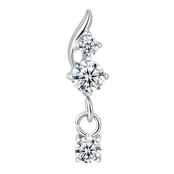Stacked elegance meets gravity-defying fun with this titanium dangle stud. Three sparkling prong-set gems cascade gracefully down, each one catching the light as they sway with your every move. Perfect for those who love a little shimmer with serious staying power—because why settle for one stone when three times the sparkle is just better? Lightweight titanium keeps comfort high while the delicate design keeps heads turning.