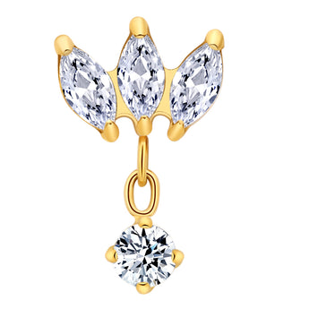 Triple the shine, triple the charm - our Tri Marquise and Gem Dangle Stud is all about graceful movement and irresistible sparkle. With three sleek marquise gems crowned by a twinkling drop, it dances with every turn of your head. Elegant, playful, and oh-so-glam - this one is made to catch eyes and light alike.