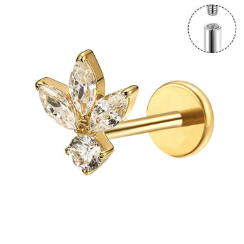 Catch the light from every angle with these dazzling tri marquise circle prong studs! Three sparkling marquise stones sit pretty atop a sleek single prong gem, creating a modern geometric look that's equal parts elegant and eye-catching. Perfect for making a subtle statement without the drama—this beauty lets your style shine through with understated glamour.
