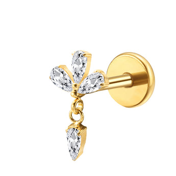 Triple the sparkle, triple the charm! This playful dangle stud features three dainty pear shaped gems that dance at every move. Elegant yet flirty, it's the perfect blend of glow and glam - like tiny drops of luxury dripping from your ear. Wear it when you want to accessories to do the talking.