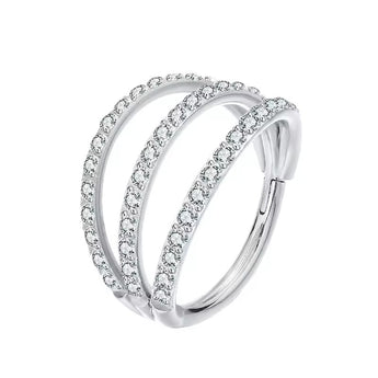 Add a sparkling twist to your look with our Triple Segmented Clicker Hoop! Featuring three shimmering gem-studded segments, this playful hoop effortlessly blends style and fun. Easy to click in and out, it's the perfect accessory to brighten any outfit with a touch of glimmer and charm.